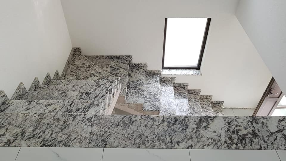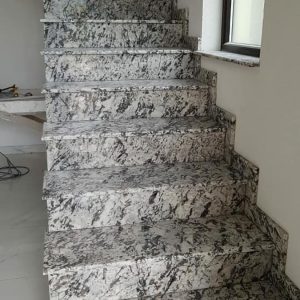 - Scări moderne și minimaliste – Granitul Alaska White se potrivește perfect cu stilurile de design minimalist, datorită culorii sale deschise și a texturii fine.