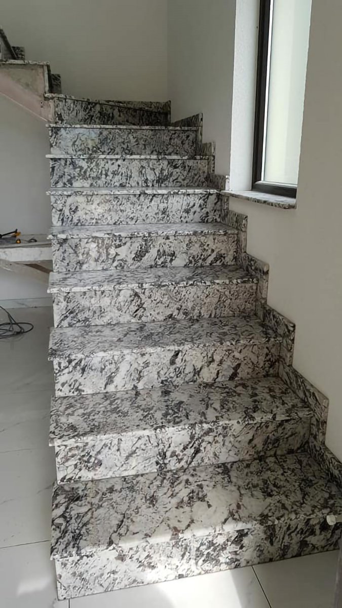 - Rezistență de lungă durată – Granitul Alaska White este extrem de rezistent la uzură, zgârieturi și pete, fiind o alegere excelentă pentru scările interioare și exterioare.